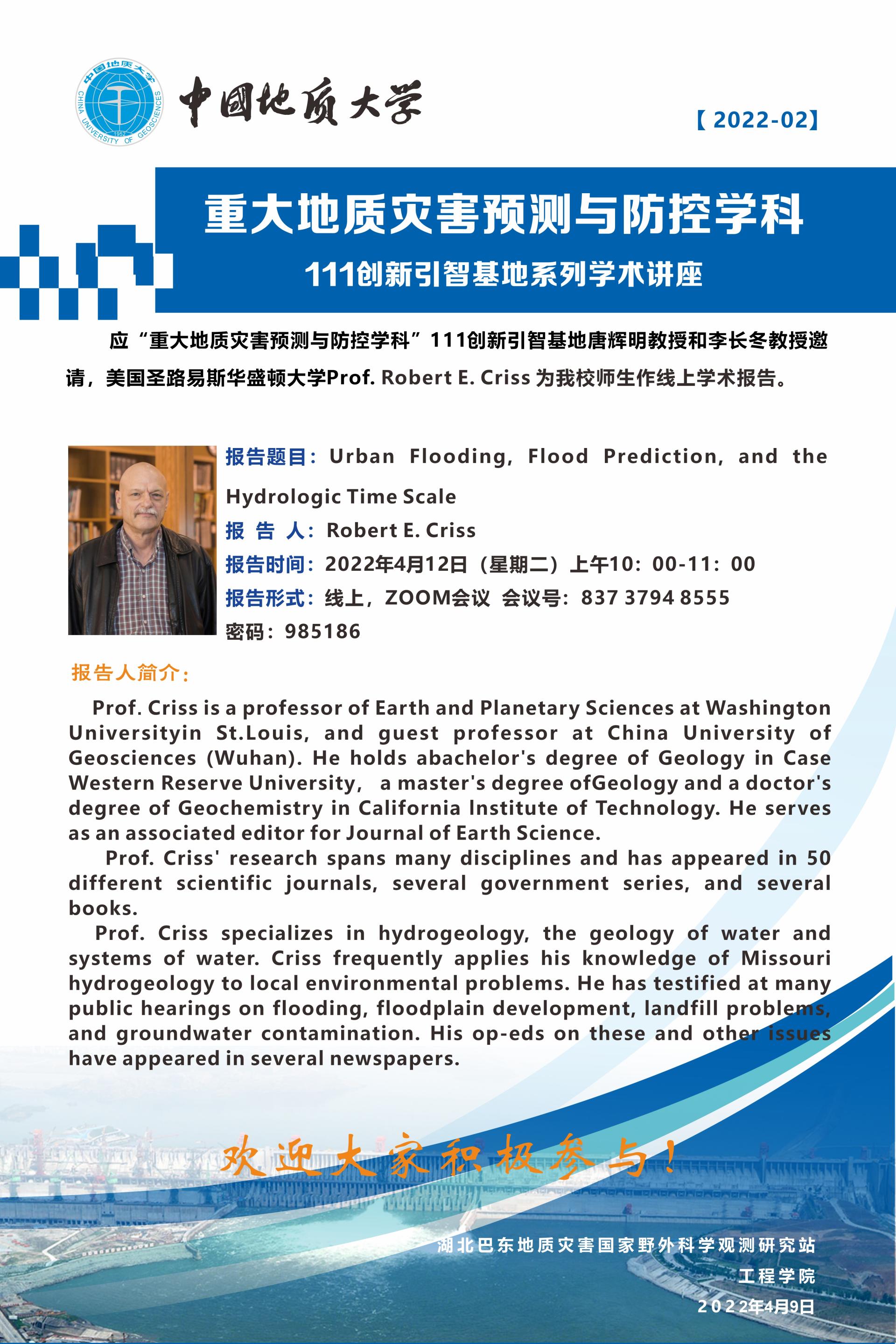 重大地质灾害预测与防控学科---111创新引智基地系列学术讲座2022-02