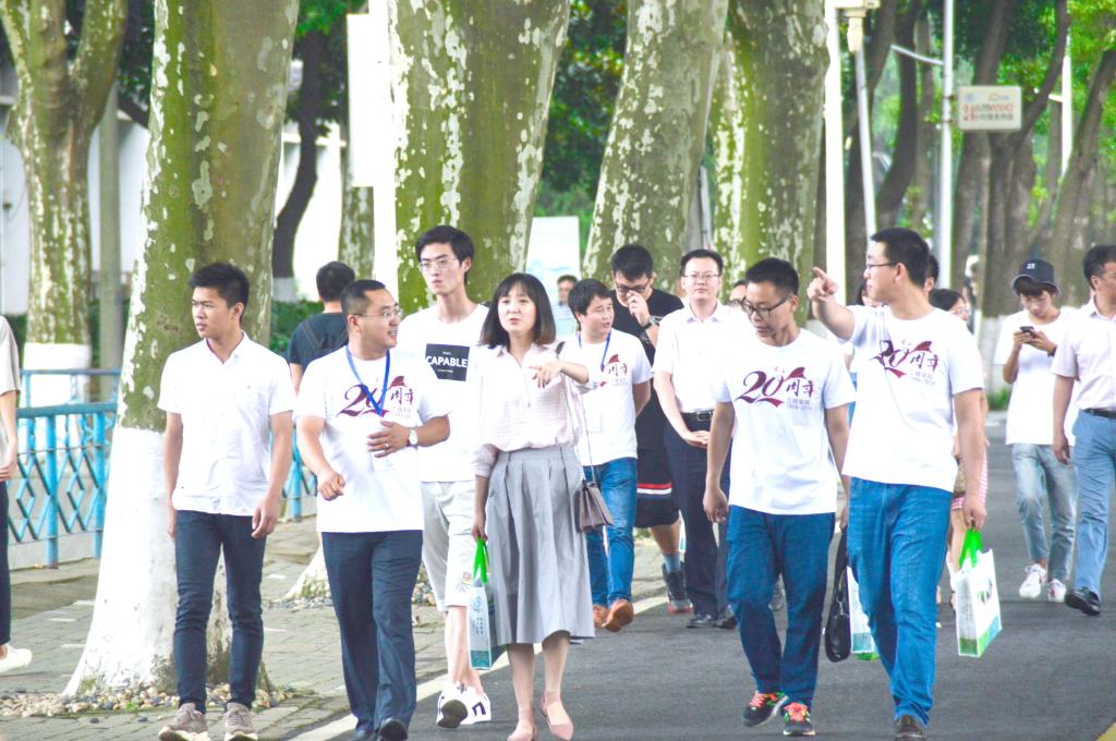在志愿者的带领下,员工们参观了校园,参加了全民健身日活动,在欢歌笑语中重温了当年的校园生活。