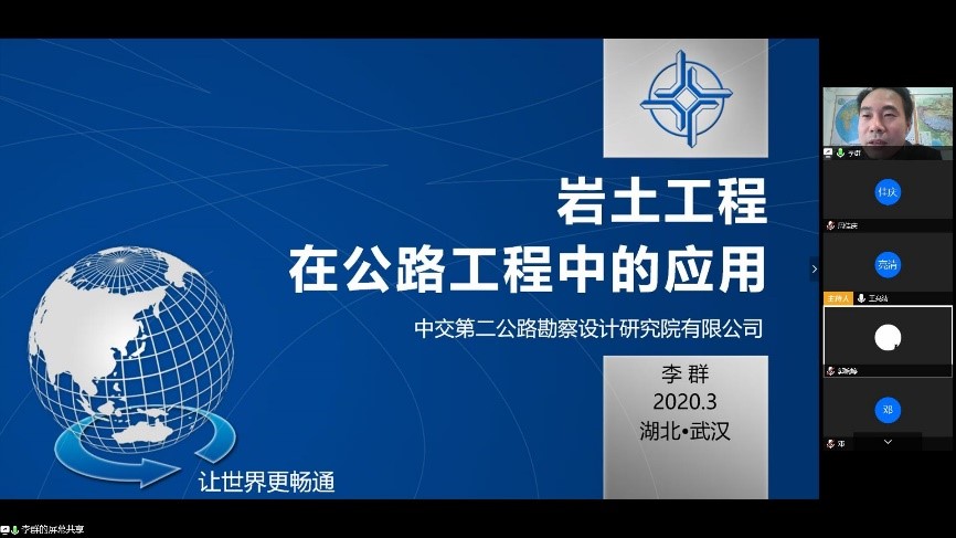 3月17日,中交第二公路勘察设计研究院西藏分院副经理李群教授级高级工程师开讲。本次采用线上讲课的形式。