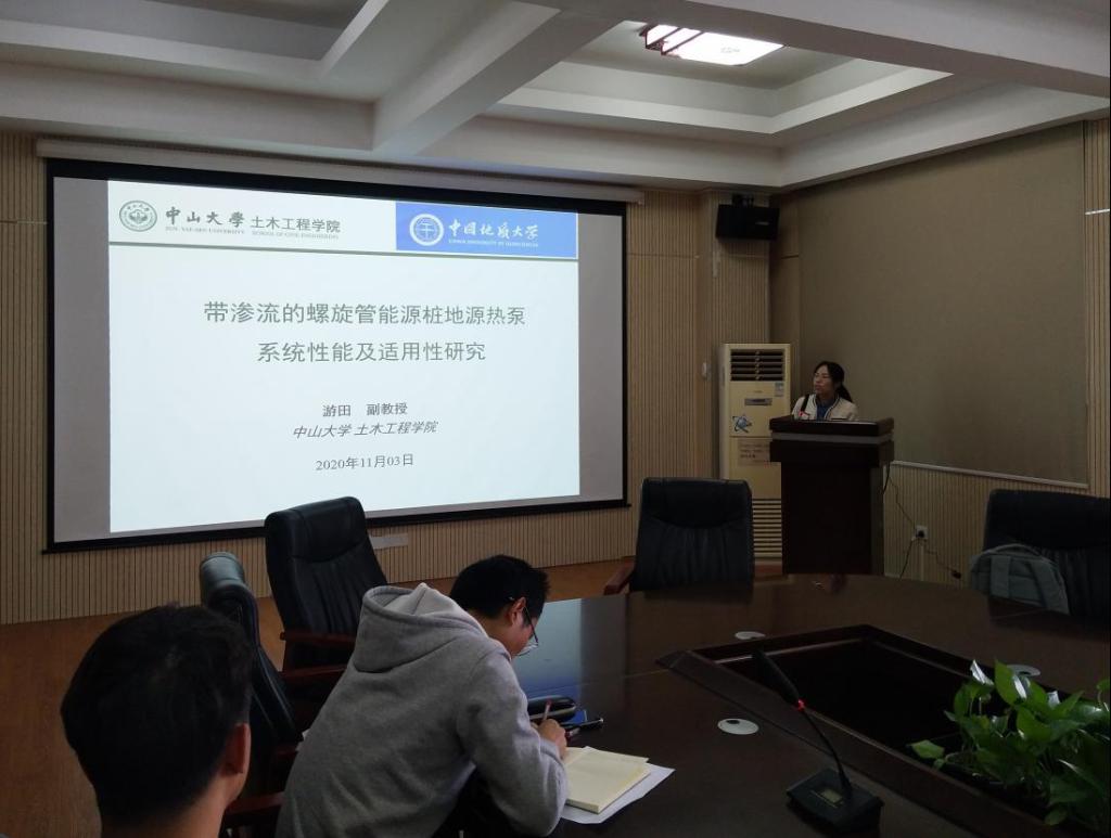 2020年11月3日下午,应WilliamHill中文官网骆进副教授邀请,中山大学游田副教授作客工程文化论坛,在315会议室作了题为“带渗流的螺旋管能源桩地源热泵系统性能及其适用性研究”的学术报告。骆进副教授主持了此次论坛活动,公司50余名师生聆听了学术报告。