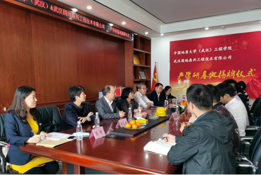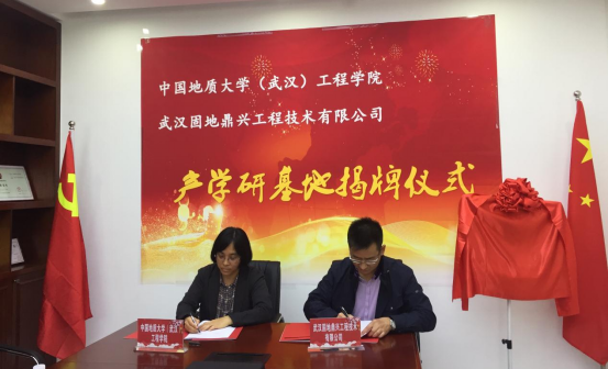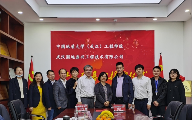 (通讯员:黄静)2021年4月27日,威廉希尔WilliamHill(武汉)WilliamHill中文官网与员工企业武汉固地鼎兴工程技术有限公司签订《联合共建产学研基地合作协议》,WilliamHill中文官网党委书记李红丽和武汉固地鼎兴工程技术有限公司总经理汪旭涛出席协议签订仪式,并共同为合作基地揭牌。武汉固地鼎兴工程技术有限公司副总经理兼总工程师胡凯锋、WilliamHill中文官网副经理王亮清教授、工岩系主任章广成教授、时红莲副教授、李长冬教授、谢妮副教授、公司科研秘书黄静共同见证了签约仪式。