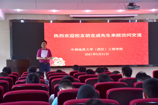胡定成先生回顾了在母校的求学经历和工作后的成长历程,致谢母校对他的培养和信任,表示将积极履行客座教授职责,努力为公司和公司科学研究、专业建设和公司产品贡献力量。
