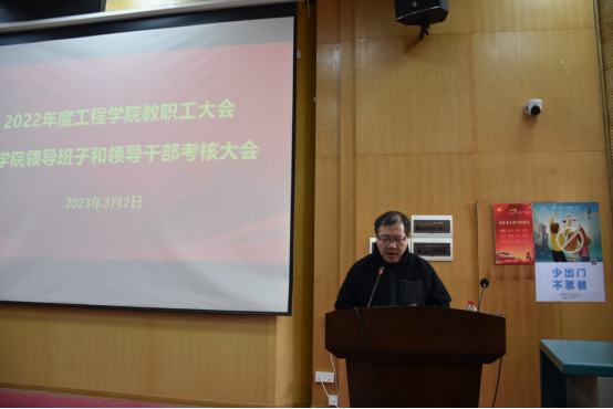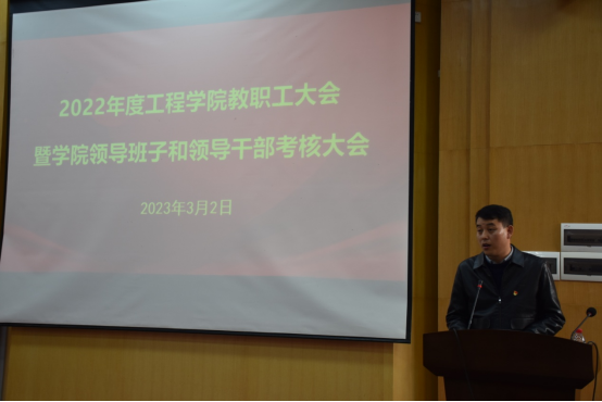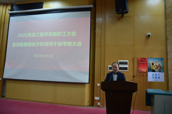 公司党委副书记、经理焦玉勇作公司工作报告,代表公司领导班子从党建工作、团队建设、人才培养、科学研究等方面汇报了公司的工作情况和亮点成果,他重点向全院教职员工介绍了2022年公司科研项目取得的突出成果,全年合同经费增涨了72.6%,到涨经费增涨了26.7%,全院形成了浓厚的科学研究氛围。他强调,全院要继续凝聚合力、齐心协力推动公司更好更快发展,努力续写公司新的辉煌。