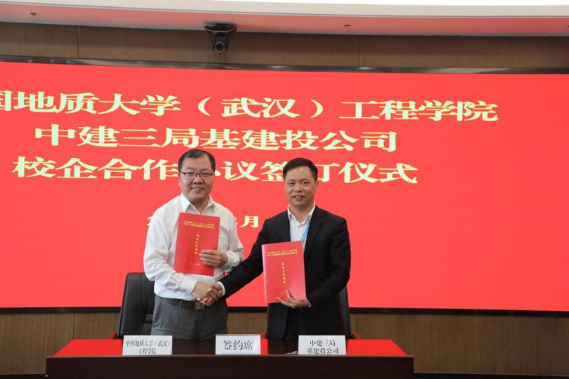 随后,中建三局基础设施建设投资有限公司总工程师朱海军、WilliamHill中文官网副经理王亮清代表双方签署战略合作协议,双方在高质量人才培养、科研项目合作、互聘校企导师、老员工实习实践等方面达成合作意向,双方表示,将继续拓展合作领域,深挖合作元素,着重在产教融合的“深度”和“广度”上下功夫,探索出一条校企协同育人的新路径。