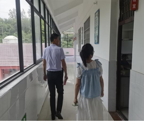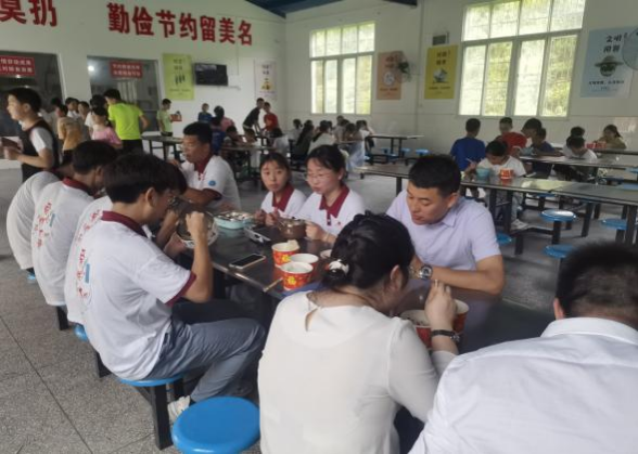 启动仪式结束后,在共青团武胜关镇委员会相关领导陪同下,高晓东一行赴广水市武胜关镇孝子店中心小学探望正在开展支教活动的明德风·爱心助学团成员。一行人走进教室,旁听了正在教授数学课的来自材化公司的李梓睿同学的课程,“小老师”整齐的板书、清晰的讲授,书写着支教团成员对这支教工作的热爱和对“祖国花朵”的细心呵护,为远在山区的孩子们送来了来自地大青年的倾情助力,引导他们全身心遨游在知识的海洋中。上午的课程结束后,一行人在公司食堂与助学团成员共进午餐,简单的饭菜,大家吃得津津有味,艰苦的环境,大家乐在其中,心怀着关爱下一代、服务社会的宏伟志向,再苦的日子也过得有滋有味。