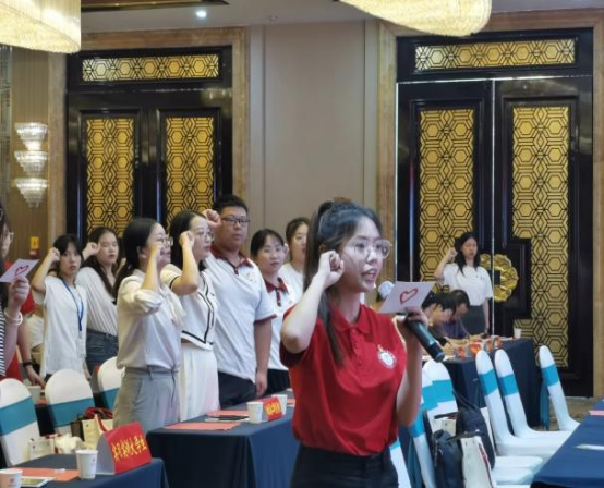 威廉希尔WilliamHill(武汉)明德风·爱心助学团黄珍妮、秦跃晁同学作为支教员工代表在会上进行了庄严宣誓,并接受由共青团广水市委员会颁发的聘书。