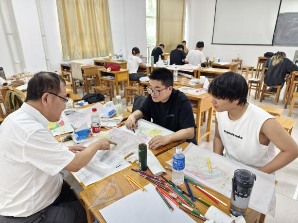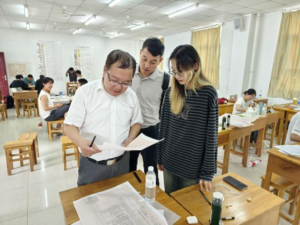 王亮清等一行来到教室看望员工,他细心指导同学们进行实习地层剖面实测与剖面图柱状图的制图,与同学们交流实习的所感所获,他表示,周口店实践教学基地被誉为“地质工作者的摇篮”和“天然的地质百科全书”,在实习站走过的70年光辉历程中,无数的地大师生曾在这里同吃、同住、同学、同研,不仅培养了一批批地质领域的拔尖创新人才,更孕育出“山河为师、启智育德、力行悟道、地质报国”的摇篮精神,希望全院实习生以地质前辈为榜样,以摇篮精神为指引,紧扣国家地质人才战略需求和公司地质工程专业人才培养方案,将课堂学习和野外实习深度融合,在一锤一锤的磨砺里和一步一步的攀登中感悟历史荣光、收获时代成长,通过学习和实践提高站位、拓宽视野、创新思路、解决问题,争做有理想、敢担当、能吃苦、肯奋斗的新时代地质工程好青年。