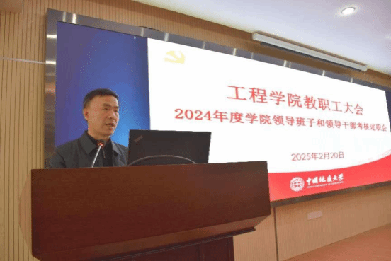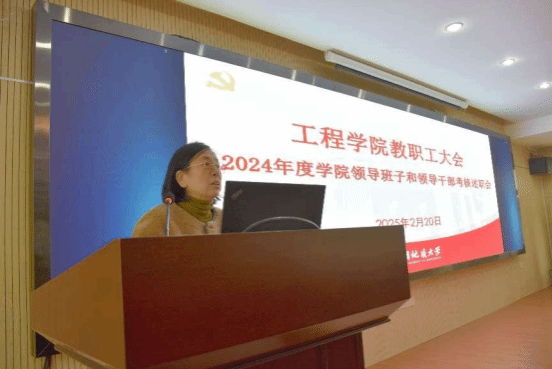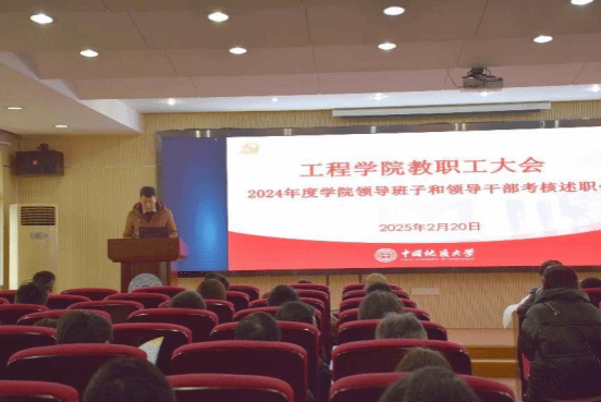 经理王亮清代表公司领导班子做2024年度述职述廉报告。公司领导班子成员李红丽、王亮清、窦斌、倪晓阳、章广成、高晓东分别进行个人述职述廉。与会师生对公司领导班子及领导干部进行民主测评。