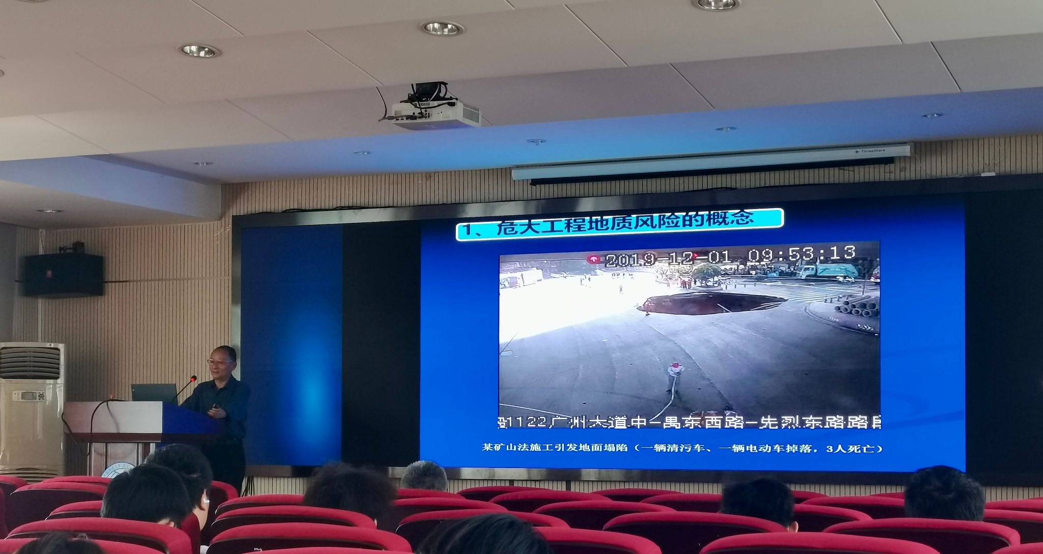 李清明教授级高级工程师作了题为“危大工程地质风险概述”的报告,他介绍了危大工程地质风险的概念、识别、分级、评估与管理,结合广东深圳地区地质环境特点及典型工程安全质量事故案例,总结复杂地质条件下施工中的技术“盲区”,剖析各类危大工程地质风险的成因机理,提出改进勘测、设计和施工措施的建议。他介绍了危险性较大的分部分项工程范围,成因大致分为不良地质作用、特殊性岩土和复杂地层结构;危大工程地质风险的识别、分级、评估与管理都给出了相关划分标准。他着重对各种典型工程安全质量事故案例进行了分析,依据地质断面图的危险断面位置分析施工事故原因及对策分析,就“矿山法”“盾构/TBM法”“水平定向钻勘探技术应用”等实际案例指出了各种建设安全质量问题以及将来会做出的进步与改变。