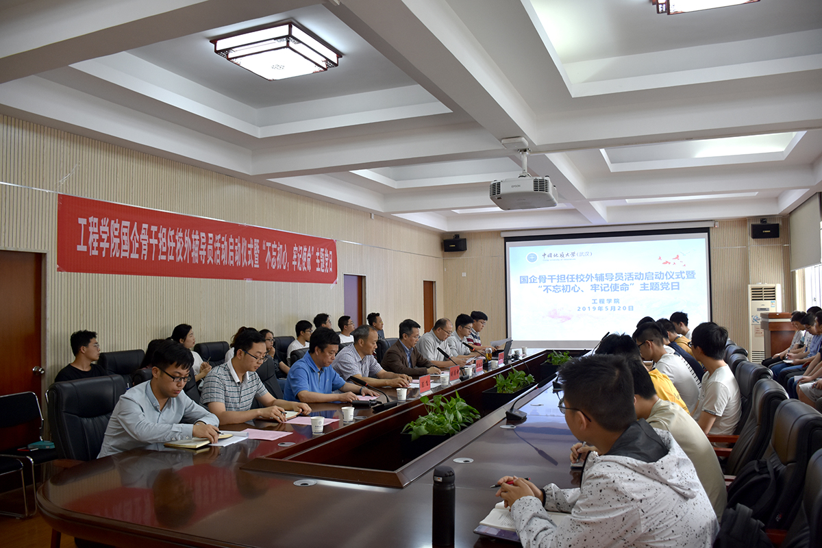 5月20日下午,WilliamHill中文官网国企骨干担任校外辅导员启动仪式暨“不忘初心,牢记使命”我与国企面对面主题党日在工程楼315报告厅成功举行。WilliamHill中文官网校外辅导员、中国黄金集团湖北三鑫金铜股份有限公司提升车间主任、党支部书记刘月中,公司学工处副处长苏洪涛,工程公司党委书记陈飞、副书记江广长、全体辅导员及四个员工党支部共40余人参加活动。