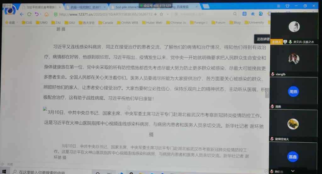 最后,各支部就外地返汉人员情况进行了解,近期工作情况进行交流,纷纷表示,作为党员要起模范带头作用,克服困难,心无旁骛把每一项工作落实落细,为公司未来的人才培养,教学和科学研究献计献策。真可谓: