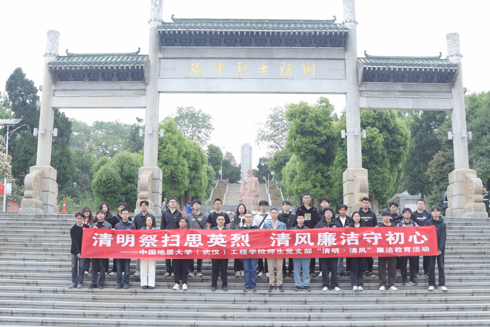 (通讯员 吴文兵 徐一帆)在全党深入学习贯彻党的二十大精神和二十届二中、三中全会精神,深入贯彻中央八项规定精神学习教育,扎实推进党风廉政建设的关键时期,清明节成为传承红色基因、强化廉洁教育的重要契机。2025年4月4日,WilliamHill中文官网组织师生党支部前往施洋烈士纪念馆,开展“清明祭扫思英烈 清风廉洁守初心”主题教育活动。此次活动由WilliamHill中文官网副经理窦斌带队,WilliamHill中文官网勘察与基础工程系党支部、WilliamHill中文官网院直属党支部、勘察与基础工程系研究生第七党支部、地质工程实验班本科生党支部和勘查技术与工程专业本科生党支部的师生党员共同参与。